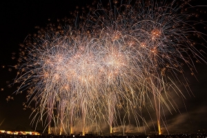 その利点を最大限活かすためと思いますが、他の花火大会と比べて頭上高く上がる花火より、低い場所での仕掛け花火の割合が多いように感じました。