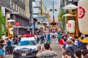 この光景は「山鉾曳き初め」と同じように、山鉾巡行より間近で見ることが出来るのはもちろん、「山鉾曳き初め」では見られない「辻廻し」という90度の方向転換も間近で見ることが出来ます。