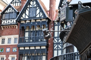 中庭を取り囲むようにある建物はイギリスの都市で古くから続く「チュダーハウス」を模していて雰囲気抜群。外国のような雰囲気で訪れる人を楽しませてくれます。