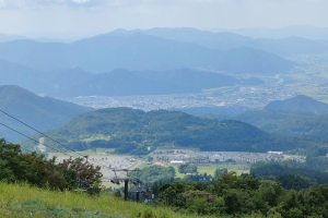 リフトを待っている間、想像を膨らませていた標高約1000mの山頂の様子ですが、そんなに広くはありませんでしたが、ベンチやハンモックなどが置いてあり、一番ときめいたのは勝山市を一望できる舞台があり、そこで映え写真を撮影できる事。