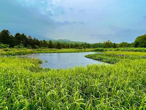 ポンホロ沼に映る逆さ羅臼岳(6月)