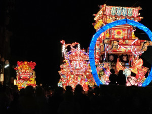 1日目は各町内で製作した夜高行燈の出来栄えを競うコンクールが行われ、2日目はその行燈で突進し、正面衝突させ...